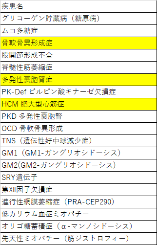 | 犬 | ムコ多糖症 |